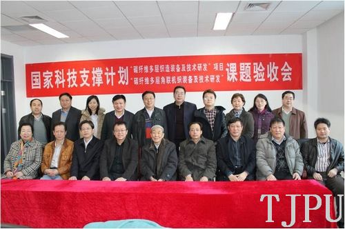 课题验收会上,验收委员会专家组认真听取了课题负责人蒋秀明教授做的课题验收汇报,查验了课题研制过程形成的技术成果、档案资料,听取了科技部条财司的财务验收通过的报告,观看了碳纤维多层角联机织装备实物样机,考察技术现场。经过质询和认真讨论,验收委员会认为该课题圆满完成了课题任务书预定目标,研制的碳纤维多层角联机织装备具有完全的自主知识产权,一致同意通过验收。