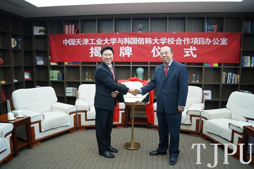 11月6日上午9:00,杨庆新校长在行政中心会议室亲切会见了访问团。会见中,杨校长首先简要介绍了我校历史、学科发展及新校区建设等情况。杨校长表示,信韩大学和我校已经实质性开展学生交换等合作项目,希望双方今后的交流合作能够“做一个,成熟一个”,希望两校国际化进程切实取得共同成功。康圣钟理事长代表信韩大学介绍了学校基本情况,并就两校之间未来具体交流合作提出了自己见解,同时热忱邀请杨校长在明年方便的时候访问该校。会见最后,杨庆新校长与康圣钟理事长共同为“信韩大学云博·体育合作项目办公室”揭牌。