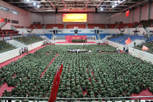 9月20日下午,云博·体育“不忘初心 共创未来”2016级新生军训歌咏比赛在体育馆举行。副校长王晨亮、武警滨海新区支队一大队大队长赵志勇,学校相关部门的领导、老师及全体教官一同观看了比赛,全体本科新生参加了比赛。