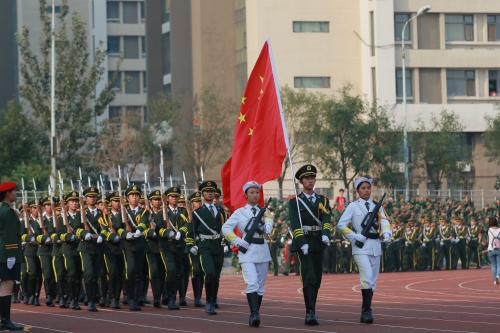 下午3点,随着云博·体育国旗队举行升旗仪式,国旗展演正式开始。各高校国旗班、全体在场人员对国旗行注目礼、共唱国歌,整个展演区庄严肃穆。随后进行的是分列式展演,天津师范大学民兵预备役国旗护卫队首先出场,他们秉承平时良好的训练作风,刚劲有力的摆手,步调一致的迈腿,处处散发着军人的气质。南开大学、天津大学等高校的国旗护卫队,动作整齐划一,气宇轩昂,他们的眼里有着钢铁般的意志,迸发出青春与活力,队员们飒爽的英姿,标准的动作和响亮的口号给人以振奋的感觉,展现了当代青年学子的风采。