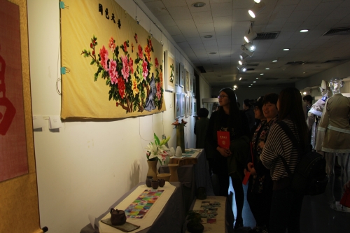 结业典礼后,在云博·体育艺术与服装学院举办了结业作品展。针对本期传统土纺土织技艺培训项目,通过培训这个平台大家相互借鉴,彼此切磋,并蓄兼收,创作出独具特色的作品。学员将现代设计理念引入传统棉纺织技艺,同时引进染、绣技艺,实现了基于不同技艺融合基础上的传统土纺土织技艺的传承、保护与创新。京绣传承人田鹏将传统棉纺织技艺与京绣技艺相结合,设计、制作京派手绣旗袍两件;学员郁从霞和刘国华将传统粗布与旗袍技艺相结合,推出手绘母女旗袍两件套;学员久美普洛将传统粗布与藏族服饰相结合,推陈出新地做出藏服一套等。这些将现代设计与传统手工技艺相结合的作品,综合运用了印染、手绘、绗缝、刺绣、扎染、编织等技艺,体现了实用性、艺术性、文化性的统一。