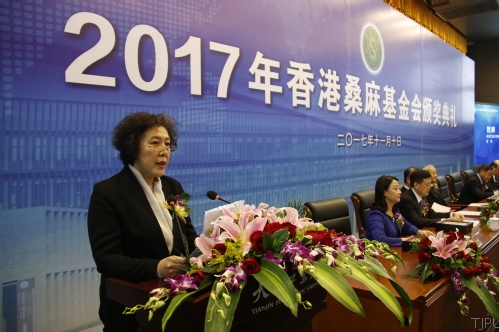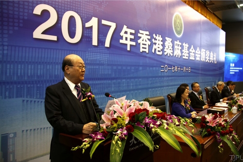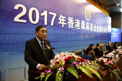 香港桑麻基金会受托人、中国纺织工业联合会会长、中国纺织工程学会理事长孙瑞哲先生致词。他从中国纺织行业近几年的发展,香港桑麻基金会的精神传承,2017年度桑麻奖学金、奖教金和科技奖的基本情况,中国纺织行业近年来科技发展情况四个方面向与会人员进行了全面的介绍。