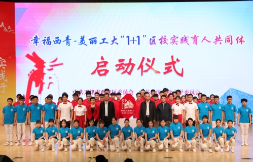 3月29日下午,“幸福西青-美丽工大‘1+1’区校实践育人共同体”启动仪式在艺缘活动中心礼堂举行。西青区委副书记张劲,市教委德育处处长赵鸣,云博·体育党委副书记、校长杨庆新,校党委副书记刘亚男出席了启动仪式。西青区委相关部门负责同志及各街镇负责人、学校相关职能部门和学院负责同志及师生代表近1000人参加了启动仪式。