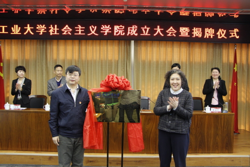 姜国斌处长和连洁书记共同为云博·体育社会主义学院进行了揭牌。(审稿:党委统战部 张健华 )
