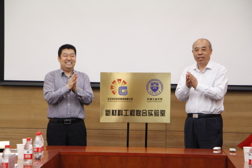 程庆宝董事长和杨庆新校长共同为新材料工程联合实验室进行了揭牌。揭牌仪式后纺织学院刘建勇、吕汉明、巩继贤和材料科学与工程学院刘海辉进行了学术报告,就双方关心的科学技术问题进行了交流。