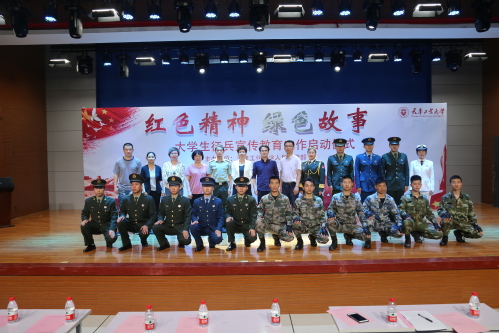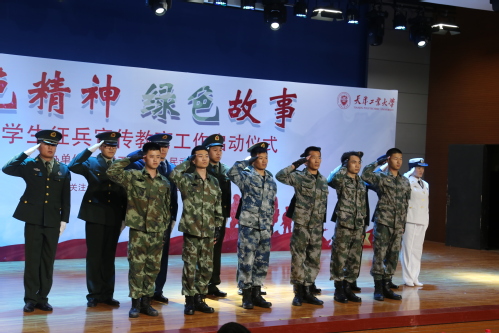 会上,一段征兵宣传片拉开了启动仪式帷幕。李仁军、罗崇斌、尚耀辉三位大学生士兵校友和一名退役在校生杨文娜分别发言,讲述了他们的“红色精神 绿色故事”。李仁军,理学院数学系09级学生,2013年6月入伍,曾服役于解放军海军南海舰队某水兵训练基地、中国人民解放军海军特种作战团(现海军陆战队某特战旅,电影《红海行动》原型部队),退役后考取清华大学数学与科学学院硕士研究生。杨文娜,现为纺织学院纺织工程1604班学生,2012年12入伍,服役5年,2017年12月以一期士官身份退伍,现担任云博·体育大学生士兵协会会长。尚耀辉,经济学院金融专业10级学生,2011年12月至2013年12月服役于武警内蒙古总队呼伦贝尔市支队根河中队,现就职于河东区发展和改革委员会。罗崇斌,纺织学院非织造材料与工程专业11级学生,2013年9月应征入伍,在西藏拉萨某通信团服役两年,后参加全军统一考试,以全团第一名成绩考入国防科技大学。他们向大家讲述了自己参军的光荣历史,及在部队的熔炉中所磨练出的意志和品格,感恩军营带给他们的华丽蜕变和快速成长。