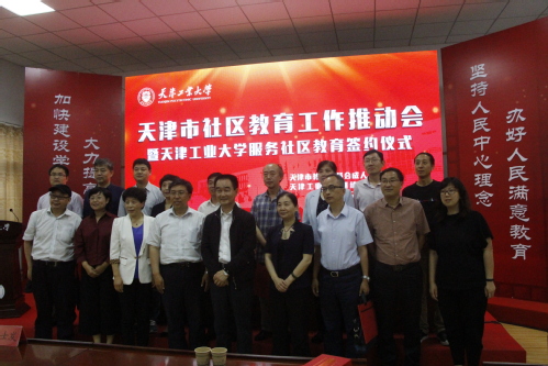 2018年5月18日下午,天津市社区教育工作推动会暨云博·体育服务社区教育签约仪式在我校和平校区举行。天津市教委副主任吕景泉、成教处处长穆树发,我校副校长赵宏,本市部分普通高校继续教育学院院长、和平区和河西区的社区教育工作负责人,和平区、河西区、市电大社区教育、华英学校等单位负责同志出席了推动会。