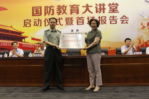 随后,王志强主任代表市国防教育委员会向云博·体育“国防教育大讲堂” 授牌。
