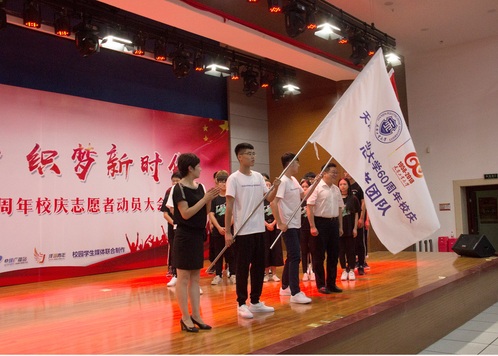 今年是我校建校60周年,学校将于2018年9月举办建校60周年系列庆祝活动。近段时间以来,各部门分工协作、同学们积极参与,迄今已顺利完成了演员志愿者、会务志愿者的招募、遴选等工作,很多校庆晚会的节目已经开始了紧张的排练。本次大会是志愿者队伍的第一次集结,更是队伍出征前的誓师和壮行仪式。
