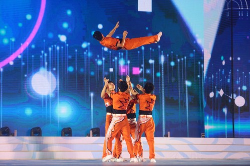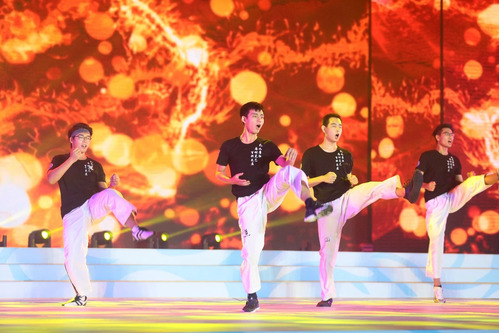 扬,乐动青春。舞蹈《选择》、学校轮滑社、跆拳道社和双节棍社带来的表演、国际教育学院留学生的舞蹈《斯里兰卡》、京剧舞蹈《梨花颂》、街舞表演、健美操表演,都为现场观众带来震撼的视觉享受。天津全运会上由云博·体育学生志愿者编排的《美丽中国走起来》,被原汁原味地带到了晚会现场,一浪浪起伏的扇舞,掀起一片橙黄色的海洋,诉说着天工大精神,展现着天工大风采。