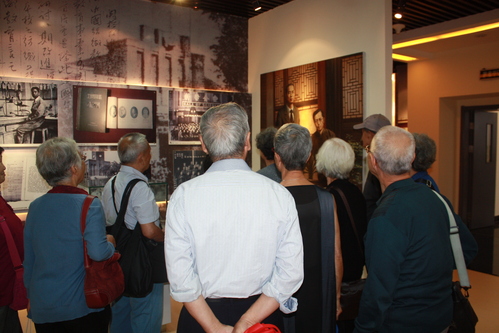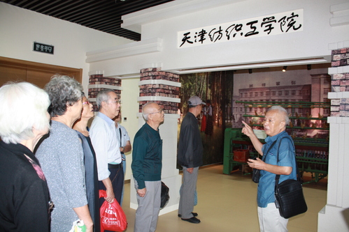 捐赠仪式结束后,老校友们参观了学校校史馆,校史馆刘东老师详细介绍学校的办学历史。当介绍到我国纺织高等教育的重要奠基人张朵山教授的历史资料时,校友赵景桥激动地说:“张朵山老先生正是我就读时纺织系系主任,也是我结婚时的证婚人。”从老照片中看到熟悉的身影时,老校友们感慨不已:“当初的小丫头和帅小伙转眼已到耄耋之年。”看到那一张张老照片,他们仿佛看到了那些青葱岁月,他们依旧笑靥如花。