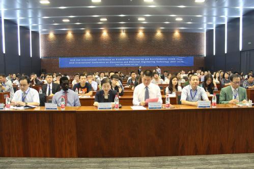2018年9月20日上午,第二届国际生物医学工程与生物信息学会议 (ICBEB 2018)和第一届电子电气工程技术国际会议(EEET 2018)在我校开幕。美国明尼苏达大学德卢斯分校白静教授、香港大学钱玉麟教授、浙江大学陈明教授、日本九州工业大学金亨燮教授、澳大利亚伍伦贡大学菲利普教授、英国爱丁堡大学卢西亚博士、我校副校长赵宏教授、电子与信息工程学院院长肖志涛教授,以及兄弟院校的领导专家、中外专家学者、研究生等200余人参加会议。