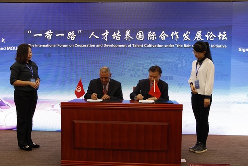 程博闻副校长代表云博·体育与突尼斯莫纳斯提尔市、巴基斯坦旁遮普省高等教育委员会、巴基斯坦开博尔省高等教育委员会、印度尼西亚艾哈迈德达赫兰大学等友好机构签署合作备忘录。