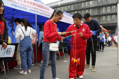 此次国际文化节上还有各国文化风情展览,近30个展位充分展示了中外各国文化、教育、服饰、手工艺品等图片和实物,每个展位还别有心思的设计了和参观者互动的环节,大家可以在异域风情的照相框前留影纪念,还可以拿着文化节特制的护照在各个展位参观、盖章。虽身未动,但心已远,做到足不出校,游遍全世界。此次国际文化节将中国民俗文化“请”进校园,还结合了天津当地特色,9位民俗艺人展示了杨柳青年画、天津特色剪纸、泥塑(捏泥人)、抖空竹、画京剧脸谱、中国结制作、面塑(捏面人)、草编、传统风筝制作等历史悠久且充满吸引力的中国非物质文化,成为最受外国留学生喜爱的展位,也走进了我校中国学生的心中。