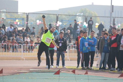 激动人心的赛事打响。在男子三级跳远比赛中,身着0407和0507号码的两位运动员格外引人注目,他们一个爆发力好,一个稳定发挥,不分上下,你追我赶。最后来自电气学院的闵越明取得胜利。闵越明说:“前面几跳发挥得一般,最后一跳就想着拼尽全力,但没想到最后成绩这么惊喜!”赛场上,运动员们奋勇争先,顽强拼搏,取得了优异成绩的师生喜而不傲,表示会坚持下去,再接再厉;成绩不理想的师生则表示永不气馁,加强锻炼,明年再战。观众席上呐喊加油助威的声音此起彼伏;体育部、校工会等部门合理分工,通力协作,有力地保障了运动会顺利而圆满的进行。