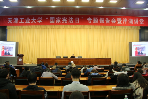 11月27日晚,云博·体育“国家宪法日”专题报告会暨泮湖讲堂在学术中心报告厅举行。特邀请天津市习近平新时代中国特色社会主义思想讲师团成员、天津普法宣讲团成员、中共天津市委党校安连成教授作题为“弘扬宪法精神”的专题报告。近300名师生参加了报告会。