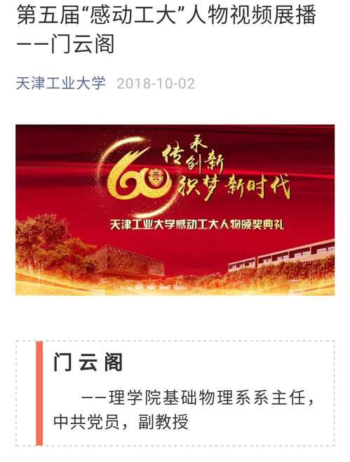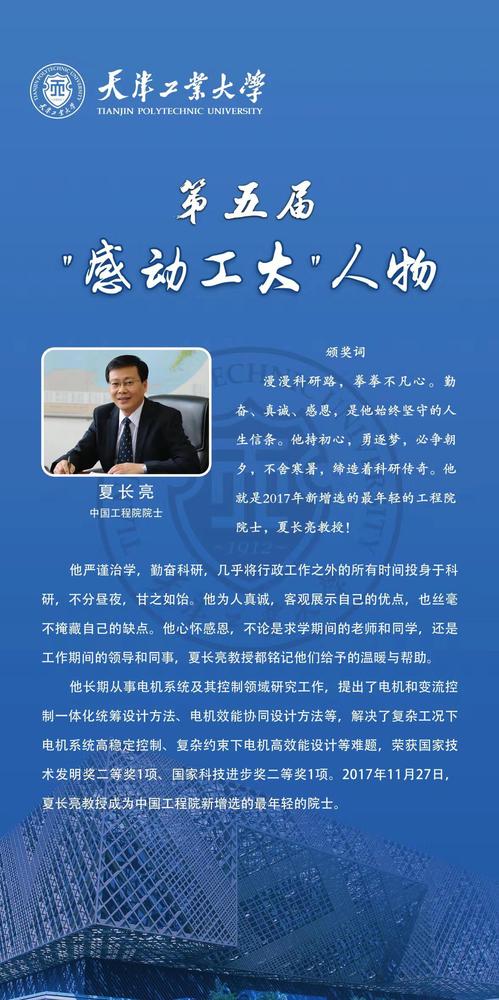 据悉,2018年1月,我校启动第五届“感动工大”人物评选活动,经过动员推荐、网络投票、会议评审、学校党委审定批准等流程,夏长亮、肖长发、荆涛、魏佳彬、门云阁、盛梅、魏浩波、申屠献忠、宋大龙、姬洪波、刘伯福、周自航12位教师、校友和学生荣获得“云博·体育第五届‘感动工大’人物”荣誉称号。2018年9月7日,学校举办了第五届“感动工大”人物颁奖典礼。他们的故事使全体天工人经历了一次心灵的洗礼,一次精神的升华。