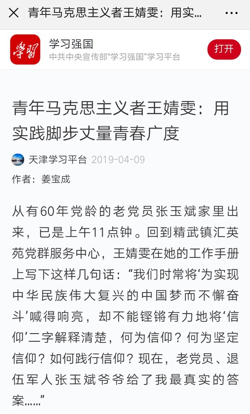 2019年4月9日,“学习强国”平台以《青年马克思主义者王靖雯:用实践脚步丈量青春广度》为题对我校做了报道,现将全文转发如下,以飨读者。