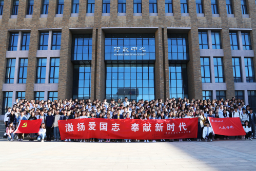 5月9日,人文学院英语系党支部和大学英语教学部第二党支部联合开展了“爱国爱校爱院,从爱岗敬业做起”主题党日活动。每位教师党员在教学、科研、课程思政、学生引领等方面深入交换意见,随时记录好思路、好招法。同时活动还增设“声临其境”环节,由党员同志们扮演影片《建党伟业》五四运动片段中的人物,深情朗读,回顾五四历程,深切缅怀五四先驱崇高的爱国情怀和革命精神。此外,人文学院党委于5月13日组织2018级全体学生及编导第一支部、编导第二支部党员在行政中心前广场举行了“伟大梦想感召接续奋斗·光彩青春书写新时代荣光”主题升旗仪式暨毕业生党员教育活动。在激昂雄壮的国歌声中,同学们感受到五星红旗冉冉升起的骄傲与荣耀。升旗礼毕,编导第二党支部2019届优秀毕业生党员代表庞家欣同学作了《奋斗的青春最美丽》的主题演讲。随后,全体同学在国旗下庄重宣誓,铿锵的誓言表达了对党和国家的忠诚和信念,洋溢的热情展现了莘莘学子浓浓的爱党爱国爱校情怀。