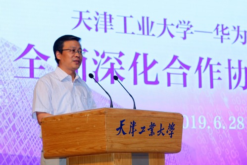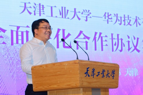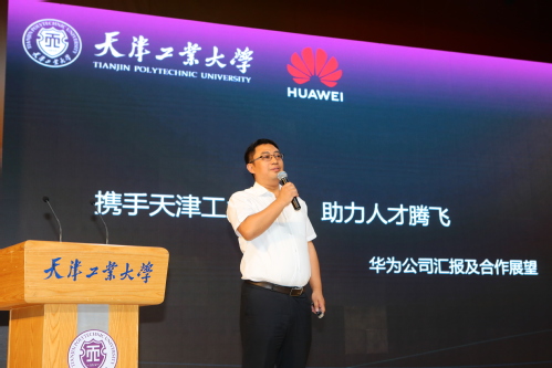 签约协议结束后,华为公司天津代表处政企业务服务部部长公磊以“华为携手高校——助力人才腾飞”为题,为参加签约仪式的师生作了精彩的专题报告。