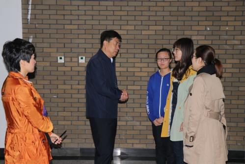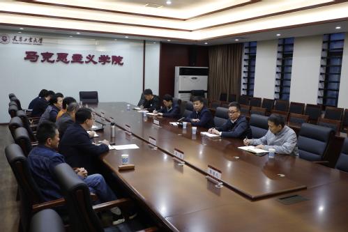 听课结束后,于立军同志冒雨步行来到马克思主义学院进行实地调研,与马克思主义学院班子成员和教师代表就推进思政课改革创新、加强“课程思政”建设等进行深入交流。于立军指出,思想政治理论课是落实立德树人根本任务的关键课程,思政课教师要从国家的长治久安、党的长期执政出发,要以国家未来与我相关的高度,树立责任感和使命感,以入脑入心为核心,推动思政课改革创新。他强调,首先要在教师真学真懂真信上下功夫。教师作为传道者理应自己先做到明道、信道。要从解决教师入脑入心出发,将潜心学习与走出去实践相结合,常学常新,真正让马克思主义理论往深里走、往实里走、往心里走。其次,要在课程内容入脑入心上下功夫。要在遵循教材内容逻辑关系和教学要点的基础上,加大课堂信息,深入挖掘中国伟大实践中能够入脑入心的丰富案例。第三,要在丰富教学方式方法上下功夫。要通过设立师生互动、思考提问、学生讲述、现场教学等,丰富教学手段,活跃课堂气氛,特别是要充分发挥大学生讲思政课的启迪作用。最后,于立军强调,学校党委和马克思主义学院要在学院建设和思政课建设上狠下功夫,要坚持以习近平新时代中国特色社会主义思想为统领,让教师将内容讲深讲透,在融汇贯通中让思政课真正到学生心里,坚定青年学生跟党走的决心。