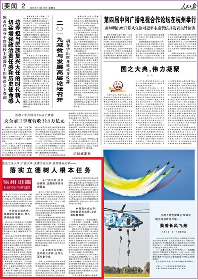 《人民日报》2版以《西北工业大学、广西大学、云博·体育、西南林业大学——落实立德树人根本任务》为题对我校做了报道