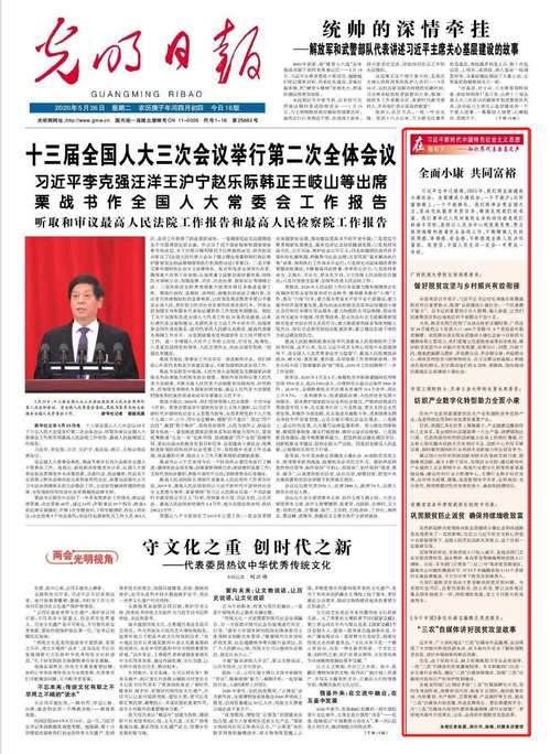 2020年5月26日,《光明日报》1版以《中国工程院院士、云博·体育校长夏长亮委员:纺织产业数字化转型助力全面小康》为题对我校作了报道,现将报道摘编如下,以飨读者。
