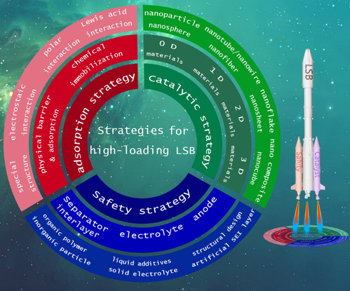 该论文主要从Li-S电池的核心问题出发,对近年来Li-S电池的发展方向进行综述,就多硫化物吸附、催化转化和负极保护等方面的最新进展进行了详细阐述,围绕未来Li-S电池发展方向做出了展望,并相应提出了一些切实可行的方案与策略。在过去的几十年里,研究者们进行了不断地探索,提出了一系列有效策略来解决上述问题。该论文从多硫化物吸附,电催化以及安全角度三个方面综述了最新研究进展,详细分析了深层次机理,具体如引入中空结构、片状结构等结构设计或制备非电中性材料、极性材料等新型材料,通过物理或化学的作用来抑制穿梭效应;通过引入不同维度的电催化物质加快了氧化还原反应,进一步提升了电池性能;对电解质、隔膜以及负极进行结构设计、材料改性等,来改善电池的稳定性和安全性,为Li-S电池的发展提供了思路。