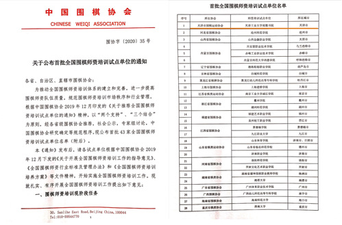 2019年12月,中国围棋协会印发了《关于推荐全国围棋师资培训试点单位的通知》。博雅书院积极递交相关申请资料,经天津市围棋运动协会初步审核推荐至中国围棋协会,最终经过社会公示,专家组讨论,中国围棋协会研究确定等规范程序,包括我校博雅书院在内的全国43家单位成功获得首批试点资格。