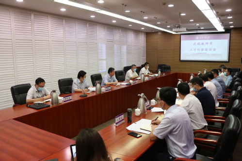 2020年9月9日,在第36个教师节来临之际,市委常委、市委组织部部长、市人才工作领导小组组长喻云林到我校慰问人才代表并进行座谈交流。天津市委教育工委常务副书记、市教委主任荆洪阳,市委组织部副部长兼市公务员局局长张津生,市人社局副局长(主持工作)沈超,市委组织部人才工作处处长郑巴音陪同来校慰问和座谈。校党委书记俞绍平、校长夏长亮院士、党委副书记陈泮成、副校长姜勇,学校人才代表、党委(校长)办公室、党委组织部、党委宣传部、党委教师工作部(人事处、人才办)等部门主要负责同志参加慰问和座谈。会议由喻云林部长主持。