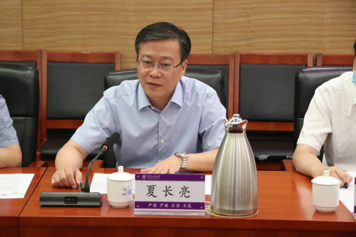 校长夏长亮院士对喻部长在教师节来临之际莅临我校进行慰问表示感谢,汇报了我校近年来在人才引进、招生工作、学科建设、人才培养等方面取得的重要进展,并就学校未来发展目标和规划作了说明。