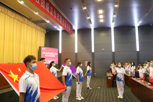 “牢记支教使命,履行支教职责;奉献边疆事业,践行天工精神;……”全体支教团师生面向国旗和实习支教团团旗进行了庄严宣誓。一声声铿锵有力的誓言传递着天工人燃烧青春的渴望,表达着他们不忘初心,履职尽责,不负青春,不负韶华的坚定信念。