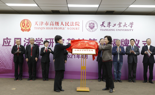 2021年4月9日上午,我校与天津市高级人民法院共同建立的应用法学研究基地签约与揭牌仪式在我校第七会议室举行,具有应用法学理论研究、人才培养和司法智库三大功能的“天津市高级人民法院·云博·体育应用法学研究基地”正式启动。天津市高级人民法院党组副书记、常务副院长蔡志萍,天津市高级人民法院民四庭庭长咸胜强,研究室副主任王毅,天津市第一中级人民法院副院长李季红,天津市第三中级人民法院副院长吴立群,我校常务副校长陈莉,副校长姜勇、刘义出席,双方相关部门负责同志、我校法学院/知识产权学院领导班子及学生代表参加了活动。蔡志萍常务副院长与陈莉常务副校长为研究基地揭牌。天津市高级人民法院研究室副主任王毅与我校法学院/知识产权学院院长肖强代表双方签署合作协议。仪式由姜勇副校长主持。