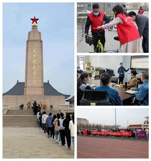 做细特色活动,激发爱党爱国情怀。纺织科学与工程学院开展“师生共读一本书”活动,通过个人自学和支部集体学习讨论相结合方式,引导广大师生深入学习党史,在党史中汲取智慧和力量。材料科学与工程学院开展了“百名党员做实事”系列志愿服务活动,机械工程学院、法学院通过下社区进基层、助力疫情防控等多种志愿服务形式,结合学院具体工作实际,引导师生党员用行动缅怀历史、追忆初心、践行使命。化学工程与技术学院、电气与电子工程学院组织师生党员前往西青区辛口镇第六埠村开展“重走长征路”红色文化体验式党员集中教育活动,激励广大师生传承红色基因、赓续红色力量。控制科学与工程学院依托学院“初心宣讲团”开展“寻找足迹”主题党课活动。计算机科学与技术学院、艺术学院组织开展“学党史 强信念 跟党走——喜迎建党100周年”主题升旗仪式。数学科学学院、经济与管理学院积极开展“我为群众办实事”实践活动,数学科学学院依托每周四下午院领导接待日制度,畅通与群众的沟通渠道,积极推动学院录播教室建设,主动作为、着眼长效、服务师生。物理科学与技术学院充分利用新媒体平台,牢牢把握网络思想政治教育新阵地,线上线下相结合,加强宣传引导,营造党史学习教育浓厚氛围。经济与管理学院以福清医疗集团总裁参加学校研究生毕业典礼为契机,与该集团签订“云博·体育经济与管理学院创新创业实践基地”合作协议,积极推动产学研合作和学生实习就业。马克思主义学院积极探索如何发挥好思政课程主渠道作用,通过课堂教学、现场体验教学、融媒体教学等喜闻乐见的形式,将党史学习教育融入思政课程,开展党史学习进思政课堂教育活动。学校工会与体育工作部联合开展体育教育服务师生、服务教职工子女志愿活动,为参加体育中考的40余名教职工子女开展体育中考技能培训。