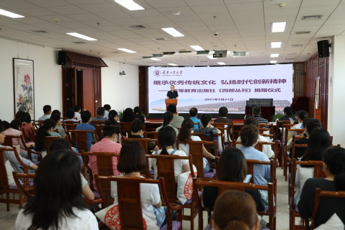 陈莉常务副校长感谢高等教育出版社的慷慨捐赠。她表示,高等教育出版社一直以来为我校教育教学、人才培养提供了强有力的支持和帮助。此次赠书更凸显了高等教育出版社服务高等教育发展,满足师生日益增长的教育、文化需求的办社理念,也是弘扬中华优秀传统文化的重要体现。学校将以此活动为契机,强化与高等教育出版社的战略合作,充分发挥学校文化育人作用,积极推进文化传承创新。
