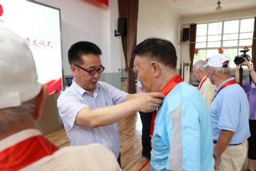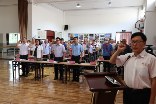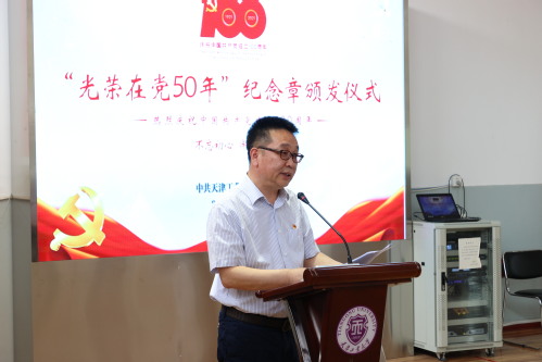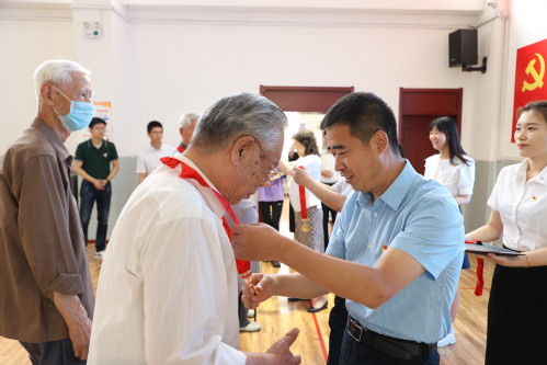 仪式在雄壮的国歌声中开始,全体党员重温入党誓词。与会领导向“光荣在党50年”党员代表颁发了“光荣在党50年”纪念章。