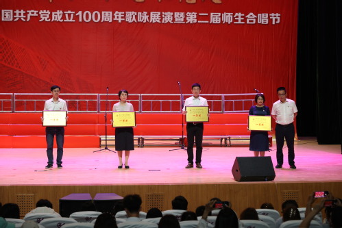 歌咏展演在全场师生饱含深情的合唱《没有共产党就没有新中国》中落下帷幕。