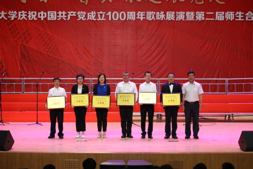 最终,人文学院党委、控制科学与工程学院党委、环境科学与工程学院党委、纺织科学与工程学院党委荣获一等奖;艺术学院党委、计算机科学与技术学院党委、国际教育学院直属党支部、电气与电子工程学院党委、材料科学与工程学院党委、体育工作部党总支荣获二等奖;物理科学与技术学院党委、化学工程与技术学院党委、数学科学学院党委、法学院党委、马克思主义学院党委、机械工程学院党委、经济与管理学院党委、生命科学学院党总支获得三等奖;机关党委获最佳展示奖,离退休党委、艺缘合唱团获最佳表演奖。校领导为获奖的集体颁发荣誉奖牌。