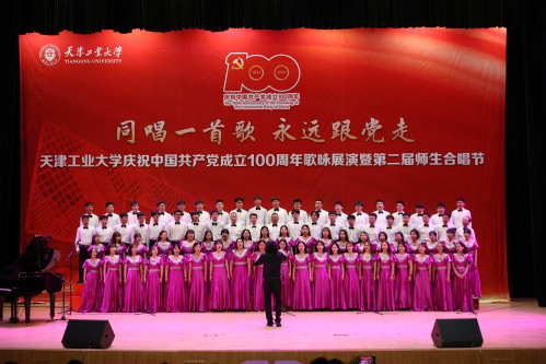 风雨砥砺不忘初心,春华秋实继往开来。天工师生用歌声吹响新时代的号角,用激情扬起新征程的旗帜。参加展演的师生纷纷表示,一定会凝心聚力,笃行致远,担当实干,开拓奋进,与祖国共进,与时代同行!师生共同祝愿我们党的事业蒸蒸日上,祝愿祖国的明天更加繁荣富强!(审稿:校团委 李贺 编辑:党委宣传部 石晓霞)