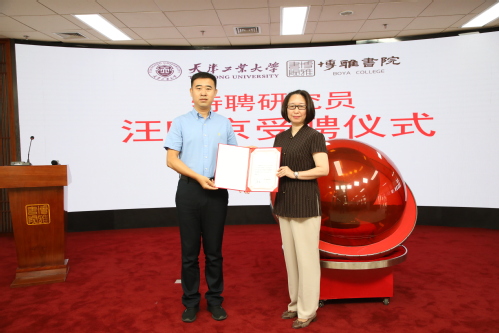 随后,开馆仪式开始,陈泮成副书记触摸启动球,数字国学馆正式开馆。之后,陈泮成副书记为汪晓京女士颁发了博雅书院特聘研究员聘书。