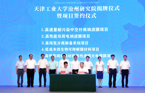 校长夏长亮院士、康彦民书记、龙奋杰厅长、陈莉常务副校长共同为研究院揭牌。我校工业技术研究院常务副院长王亮和沧州高新区管委会党工委书记夏军分别代表双方完成了研究院首批7个项目的现场签约。