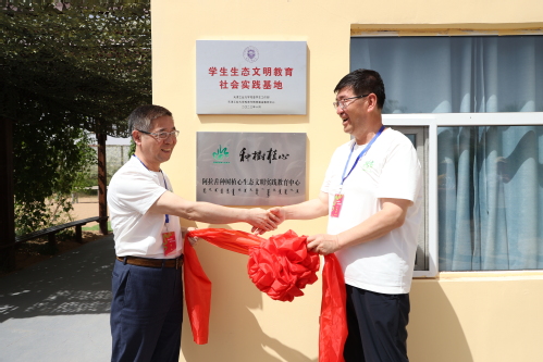 在活动现场,刘义副校长与吴向伟校友共同为“云博·体育学生生态文明教育社会实践基地”揭牌,刘义副校长为吴向伟校友颁发了“云博·体育学生社会实践导师”聘书。刘义副校长表示,学校将认真贯彻落实习近平生态文明思想,组织广大学生到实践基地开展社会实践活动,让广大学生实地体验、亲手参与,为建设美丽中国增绿添彩。刘义副校长还对积极投入沙漠锁边生态公益行动和校友生态家园建设的校友们表达了感谢。