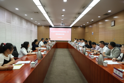 张玉波副书记代表学校党委对吴阿古拉部长一行的到来表示欢迎,并介绍了学校基本情况以及近年来在人才培养、科学研究、成果转化、文化传承创新等方面开展的工作和取得的成效。双方就基层党组织建设、干部队伍建设、意识形态工作、统战工作、国际交流工作、学科建设和人才培养以及二级学院内控治理等方面进行了深入交流