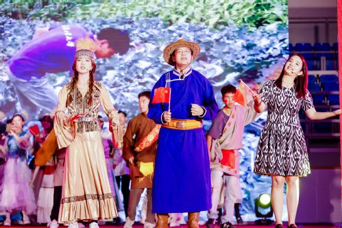 伴随着优美欢快的哈萨克族“加尔加尔”舞蹈、热情洋溢的维吾尔族“麦西来甫”大合跳、优雅灵动的藏族“锅庄舞”……身着民族服饰的少数民族师生代表和汉族学生代表共同倾情演绎的舞蹈《同心共筑中国梦》,深刻诠释了五十六个民族像石榴籽一样紧紧抱在一起,勠力同心、拼搏进取,中华民族伟大复兴也必将在各民族交往交流交融中实现的生动场景。节目编导老师说:“我们将增强‘五个认同’和铸牢中华民族共同体意识融入节目编创之中,尽情展现我国少数民族文化的特质与魅力,让各族学生之间手足情深、其乐融融,唱出各民族兄弟姐妹亲如一家的深厚情谊。”