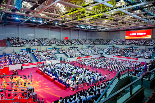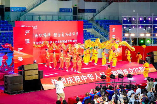 2024年9月29日下午,当两条“飞龙”上下舞动奔向舞台时,瞬间引爆了学校体育馆文艺演出的现场。伴随着师生们的深情演唱,云博·体育庆祝中华人民共和国成立75周年文艺演出正式拉开帷幕。在这里,灯光熠熠的舞台成为思政课的讲台,一个个激昂慷慨的唱词、一段段娓娓动情地讲述、一幕幕感人至深的舞蹈,寓情于景、寓景于情,成为了学校大思政课的“活教材”,持续“燃炸”全场。