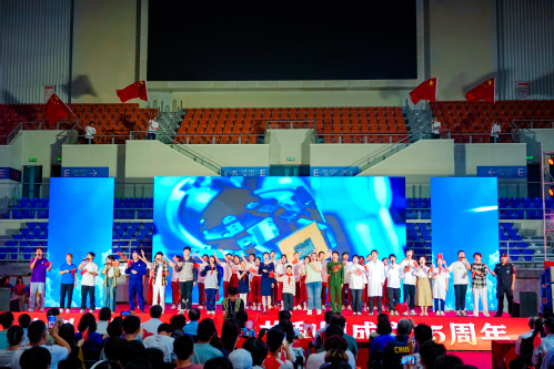 现场近6000余名师生在五星红旗的海洋和人浪中,共同回顾了中国共产党团结带领中国人民走过的光辉历程,展现了新时代天工师生的奋斗姿态,进一步凝聚起“强国复兴有我”的奋进力量。舞蹈《无问西东》的演员们以“华北之大,已经安放不得一张平静的书桌了”为背景,以充满力量的舞步,演绎了民族危亡关头,中国青年为求知识与进步,以身许国、奋起抗争的史诗,直至阳光洒满课堂,唤起了在场师生对革命历史的追忆和对革命先辈的崇高敬意。离退休老同志带来的合唱《祖国不会忘记》和退伍大学生士兵带来的合唱《强军战歌》,表达了对祖国、对军人的崇敬和感激之情,赞美了那些为了祖国繁荣昌盛而付出努力的人们,尤其是那些甘于寂寞、长期隐姓埋名、为国家事业奉献自己的人。歌曲联唱《青春之歌》和歌舞《新青年》,展现了当代青年大学生的昂扬奋进的精神风貌和“强国有我”的报国志向。参演的学生社团负责人说:“生逢盛世恰青春,我们要传承红色基因、赓续红色血脉,学好本领,提升素质,接好接力棒,跑出我们这代人的好成绩。”