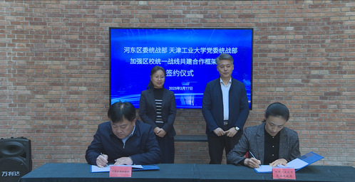 2025年3月17日,我校党委统战部与河东区委统战部加强区校统一战线共建合作框架协议签约仪式在津一产业公园举行。校党委副书记张玉波,河东区委常委、区委统战部部长张洪政出席签约仪式。