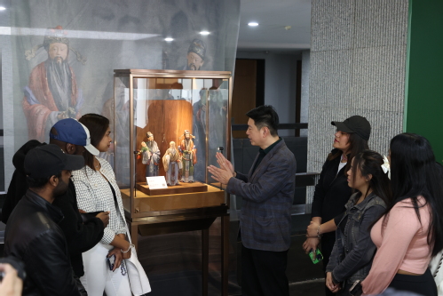 在展览现场,参观师生被栩栩如生的彩塑手工技艺所吸引,久久驻足,不时询问制作细节。大家不由自主地惊叹:“太精美了!”纷纷拿出手机拍照。师生们还可以通过现场展示的书籍刊物、明信片等,深入了解泥人张的发展脉络、艺术特色以及背后的文化故事,感受这项传统技艺在岁月变迁中所蕴含的强大生命力。