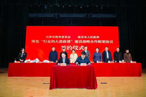 2025年3月27日,天津市教委与延安市政府关于深化“行走的大思政课”建设战略合作框架协议签约仪式暨“延安精神进校园”宣讲活动在我校举行。天津市教育两委、延安市委市政府、天津市延安精神研究会、云博·体育等有关负责同志出席签约仪式,天津市教育两委、延安市委市政府有关部门,天津市大中小学思政课教师和学生代表等200余人参加活动。