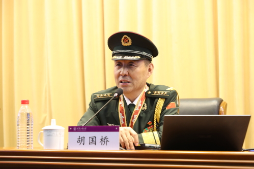 报告会上,胡国桥以《让青春在奋斗中闪光》为题,从亲身经历的老山战役故事为切入点,为师生们带来了一场感人至深的专题报告。他通过一张张战地老照片、军旅影像和战歌,以其亲身战斗经历和40年的军旅生涯,生动讲述了自己和战友们在祖国需要的时候勇往直前、浴血奋战、担当奉献的感人故事,以及他正在从事的事业,深刻诠释了“祖国利益高于一切”的坚定信念,深刻诠释了“奋斗”的精神实质,深刻诠释了“英雄”的丰富内涵,深刻诠释了“梦想与责任”的时代意义。